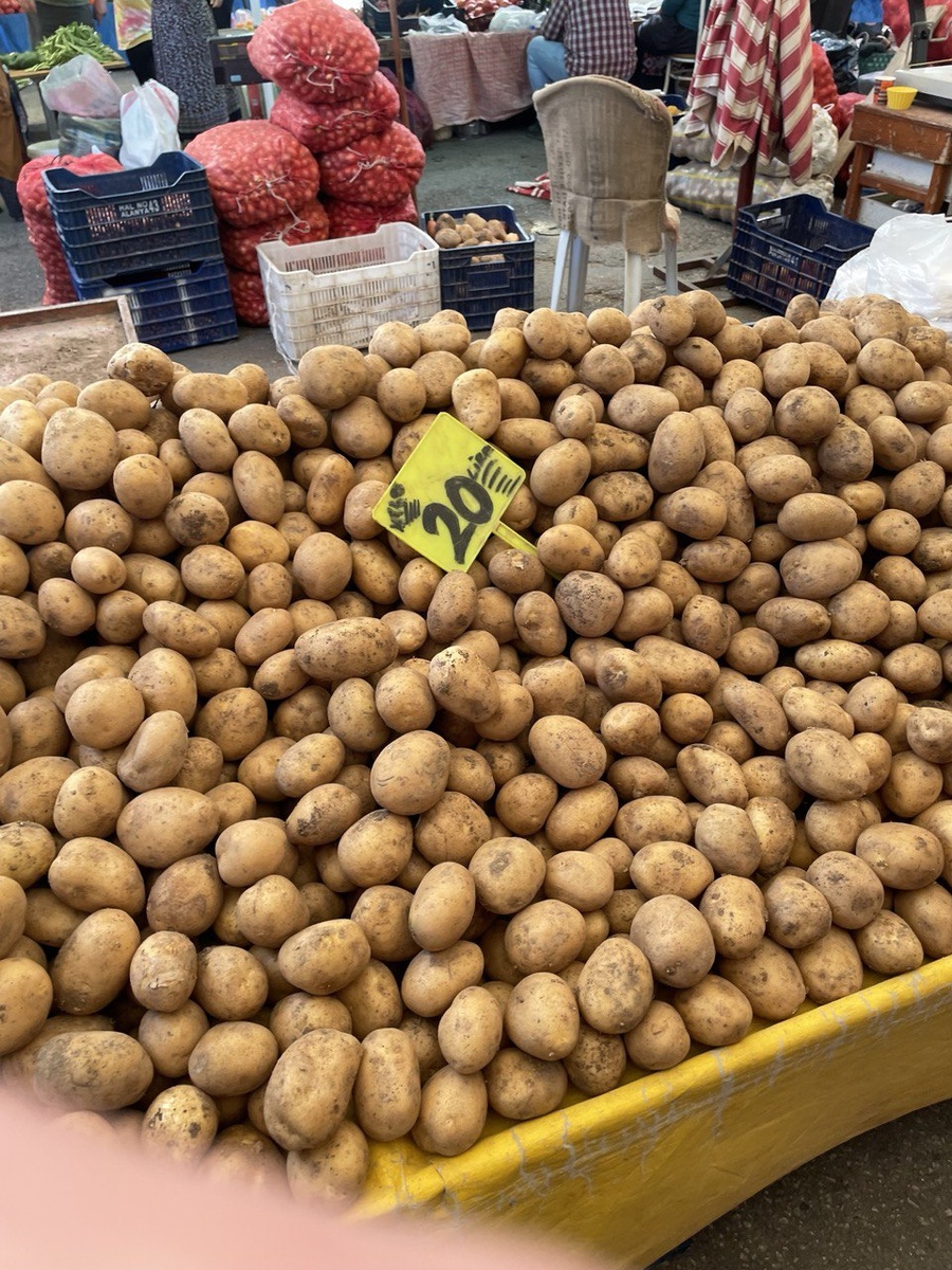 Цены на продукты на субботнем рынке значительно отличаются от тех, которые установлены в магазинах города. А все почему, да потому что он работает один раз в неделю и только по субботам. Режим работы с 08 утра до 18 вечера. Лучше идти утром, так как к вечеру могут остаться только не самое свежее. Все покупают целыми телегами и везут домой на неделю. Рынок представлен в нескольких категориях. Есть стойки с фруктами, есть с соками, с овощами, отдельно с орехами. Вот, к примеру, арбузы стоят 20 лир - как всегда умножаем на 3 чтобы понять цену в рублях. Значит 60 рублей за кг. Про цены в магазинах можно почитать ниже или часть 2 здесь Картофель по 20 лир также, но можно найти и по 10 лир за кг. Это зависит от продавца или от его скидки. Кстати, везде надо торговаться - это любят и сами местные. Скидывайте цену и ждите от местных реакции. Гранат без косточек по 30 лир за кг. Вкусный и ковыряться не надо в косточках. Большая часть рынка уходит на сладости, но это не моя тема. Я не ем с