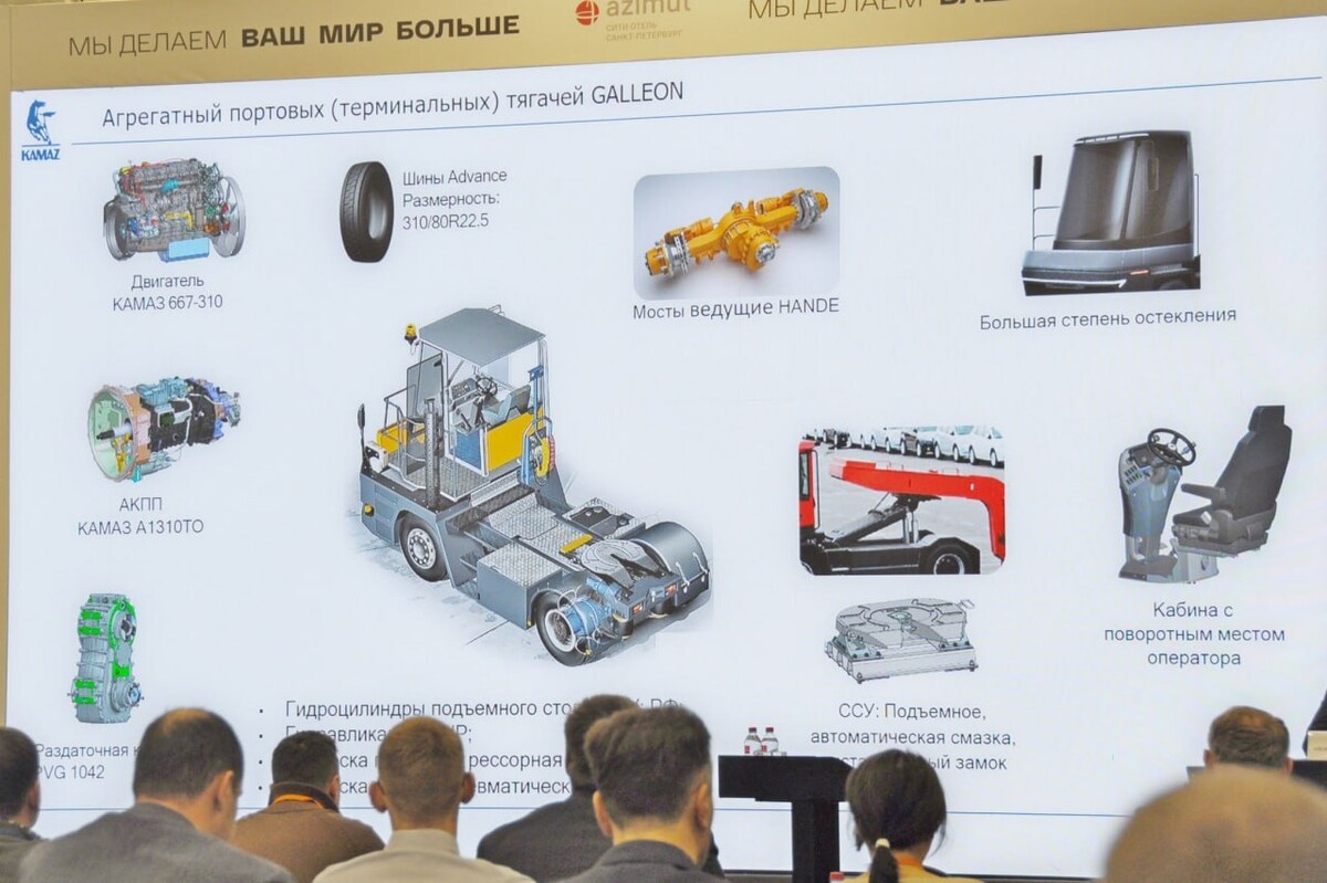 КамАЗ готовит переднеприводный тягач грузоподъёмностью до 33 тонн. Первый прототип такого грузовика соберут в начале 2025 года, опытно-промышленную партию ждут в течение 12 месяцев. Фото: «Грузовики и вообще» Особенностями терминального (портового) тягача Galleon станут оригинальная компоновка под передний или полный привод, специальная кабина с поворотным местом водителя-оператора, пишет «Мотор». Тягач будет оснащаться преимущественно российскими компонентами. Для модели Galleon заявлен локализованный дизель КамАЗ-667.310, российская автоматическая трансмиссия и раздаточная коробка. Также в РФ будут собирать рамы, а вот шины, тягово-сцепное устройство и мосты планируют закупать в Китае. Снаряжённая масса базового тягача заявлена на уровне 7,5 тонны, опционально будет доступна девятитонная версия. Грузоподъёмность — до 33 тонн. В августе КамАЗ зарегистрировал новую «дочку» под этот вид бизнеса: юрлицо называется «КамАЗ — портовые машины». Сколько «Галеонов» автогигант рассчитывает выпу