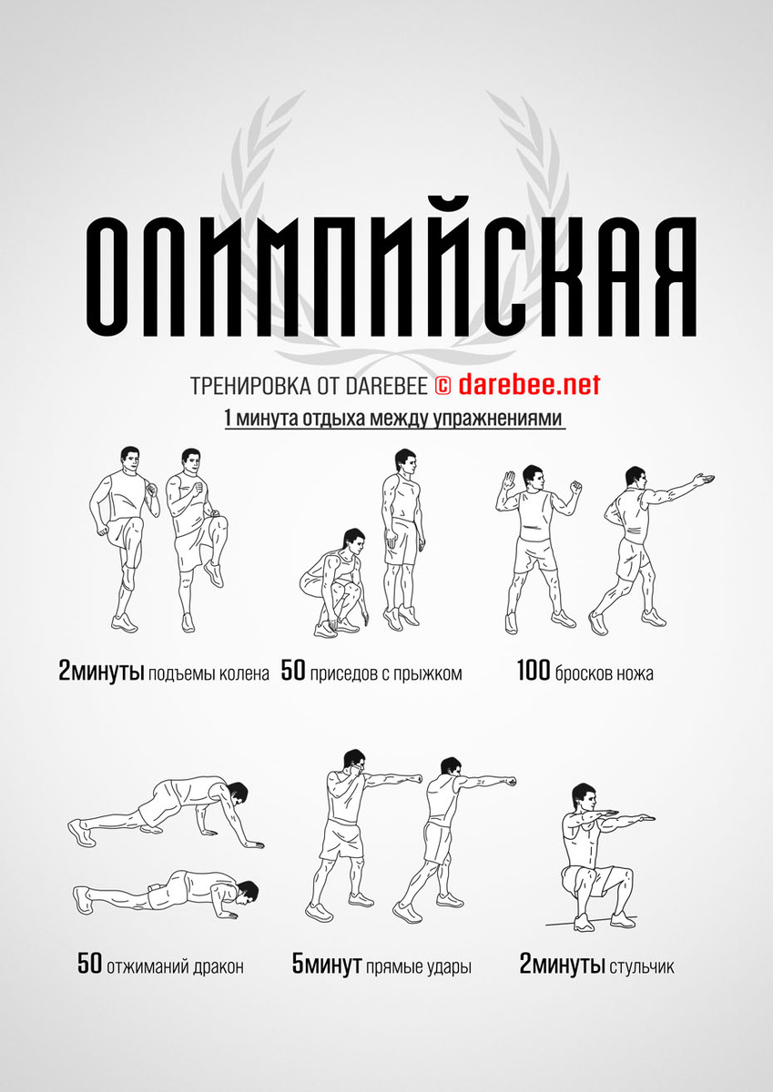 Новый релиз / домашняя фитнес-тренировка — Олимпийская. Олимпийская тренировка для тех, кто готов почувствовать, что его тело достигло высот. ЦЕЛЬ: все тело ТИП: силовая СЛОЖНОСТЬ: 3 — подходит для начинающих https://darebee.net/olympic-workout.html