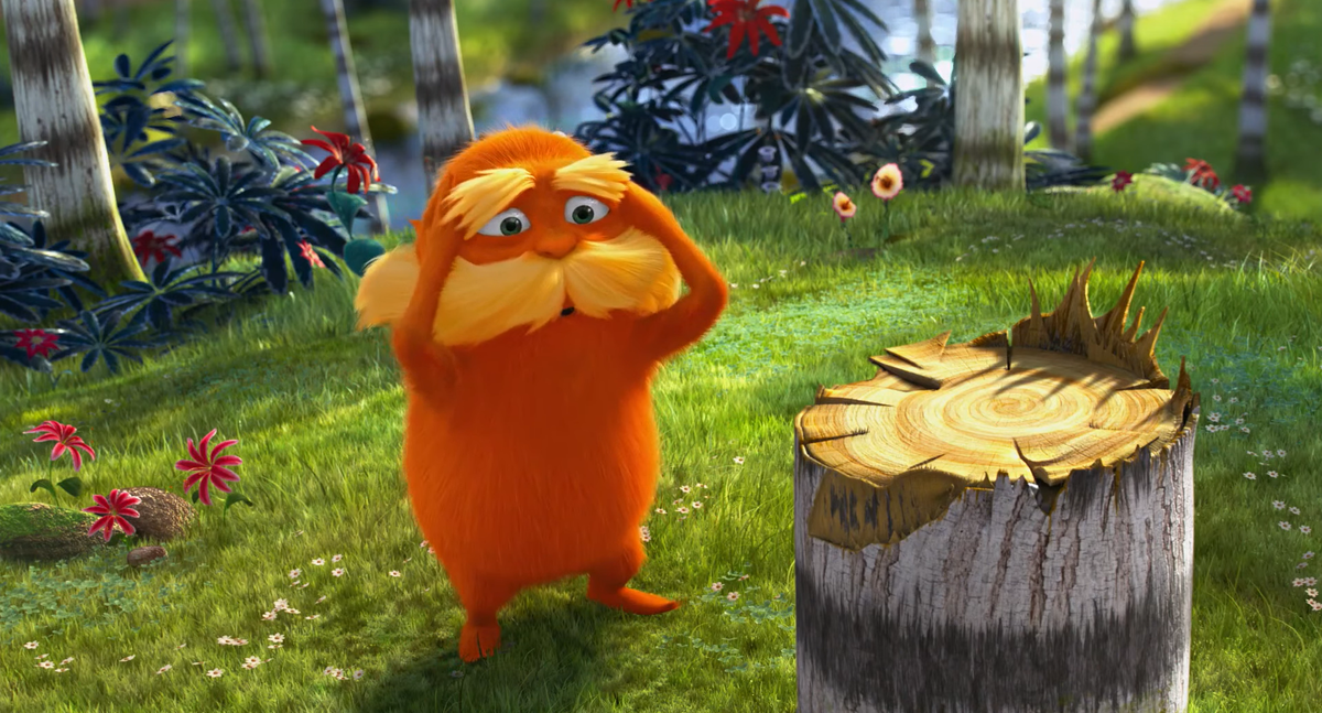И так, Лоракс появляется после того, когда Находкинс срубил первое дерево. Он пытается прогнать его, но тот отказывается, насмехается над его ростом и видом. Я бы советовал Лораксу прежде всего не вести себя, как неадекватный отшельник, а поздороваться с лесорубом, узнать о нём побольше и даже о себе самом побольше рассказать. Ведь так то Находкинс был человеком общительным, внимательно слушал и даже сам на всё отвечал.