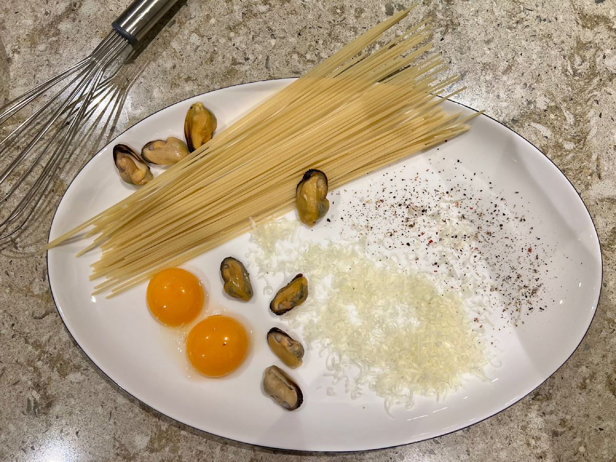 Спагетти - как много в этом слове для сердца едока слилось. У меня сегодня случилась коллаборация (очень модное нынче слово, ага) карбонары и мидий. Без бекона правда, он тут нам ни к чему (а еще у меня нету, ха). Ну вы же в курсе, что в карбонаре не должно быть ни капельки сливок? А почему ощущение сливочности получается знаете? Короче, сначала обжарим мидий. Тех, которые позорно потеряли свои створки в неравном бою с производителями. Я особо к ним ничего не добавляю, только щепотку соли. Маленькую такую, знаем же что морепродукты мало соли требуют. Поджарили (но не до резинки!) и вынули в тарелочку. Спагетти сварили почти до готовности (альденте, да да). Пока они варятся хлюп хлюп два желтка в мисочку, туда же ших ших натертый пармезан и молотый черный перец. А вот теперь фокус. Отлейте воды от макаронных изделий, дайте ей чуть остыть и влейте немного в желтки. Зальете кипятком, получите омлет, печально. Все это дело перемешайте. Вот этот трюк и дает то самое сливочное послевкусие