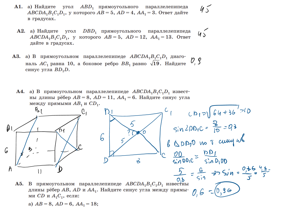 Параллелепипед (Уровень A) При необходимости полноценного оформления решения какой-либо задачи, оставляем заявку в комментариях. Все решения выполнены человеком. В случае обнаружения вычислительных ошибок, просьба отметить этот недочёт в комментариях.