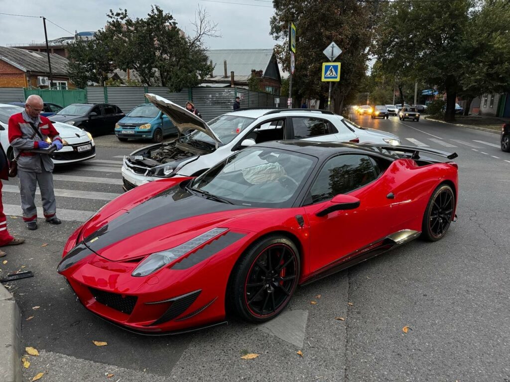 В центре Краснодара в ДТП попала красная Ferrari за 20 млн рублей