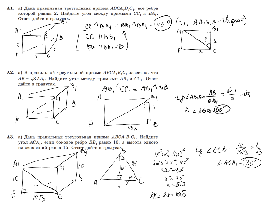 Призма (Уровень A) При необходимости полноценного оформления решения какой-либо задачи, оставляем заявку в комментариях. Все решения выполнены человеком. В случае обнаружения вычислительных ошибок, просьба отметить этот недочёт в комментариях.