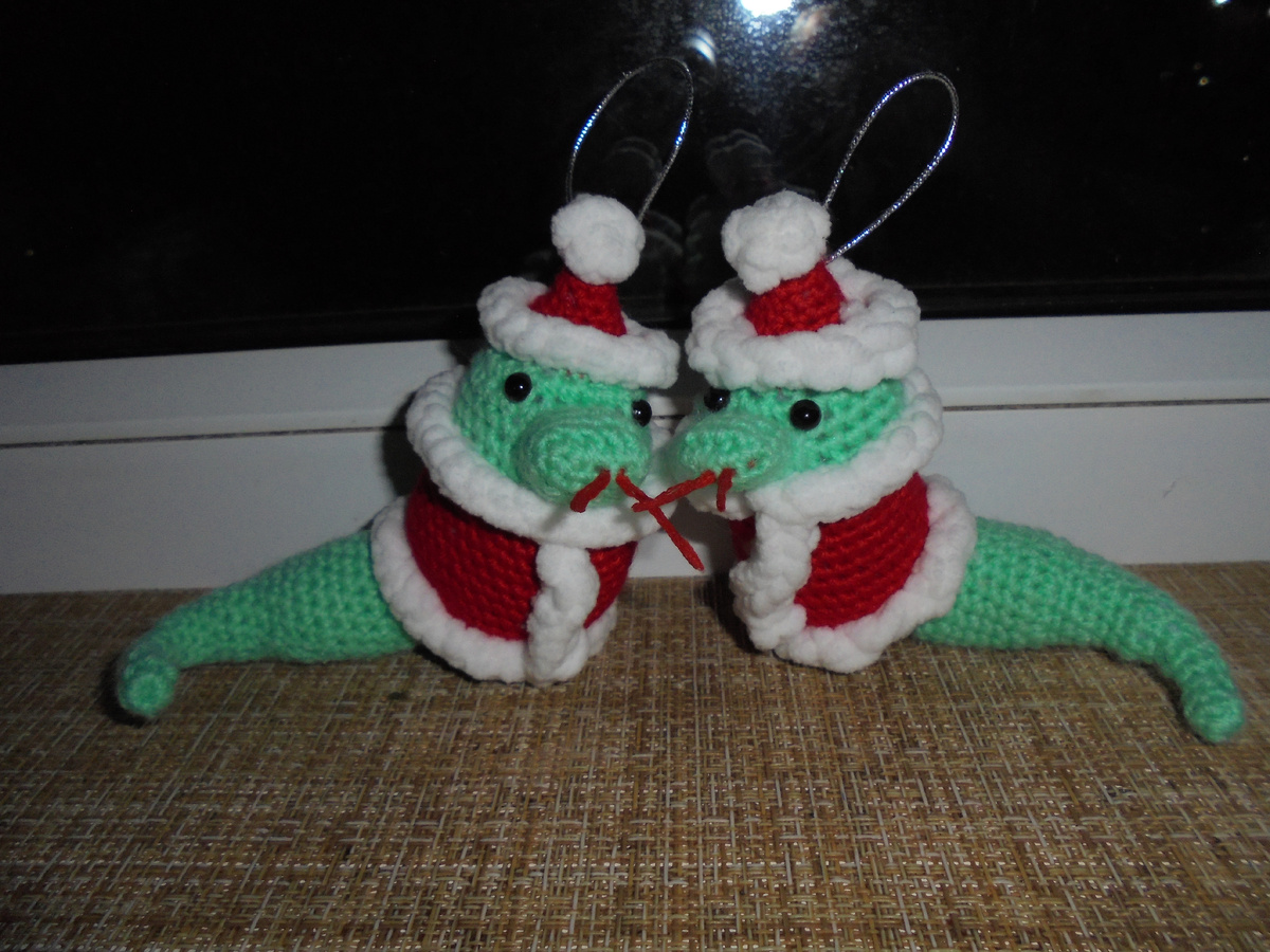 А вот и первые змейки-близнецы, сделала в виде елочных игрушек и язычки немного по другому сделала, мне так нравится больше, хочу навязать много разных, буду искать интересные схемы и делиться ими с вами, ну и готовыми работами конечно-же, еще хочу связать снегирька на елочку, думаю будет интересно смотреться