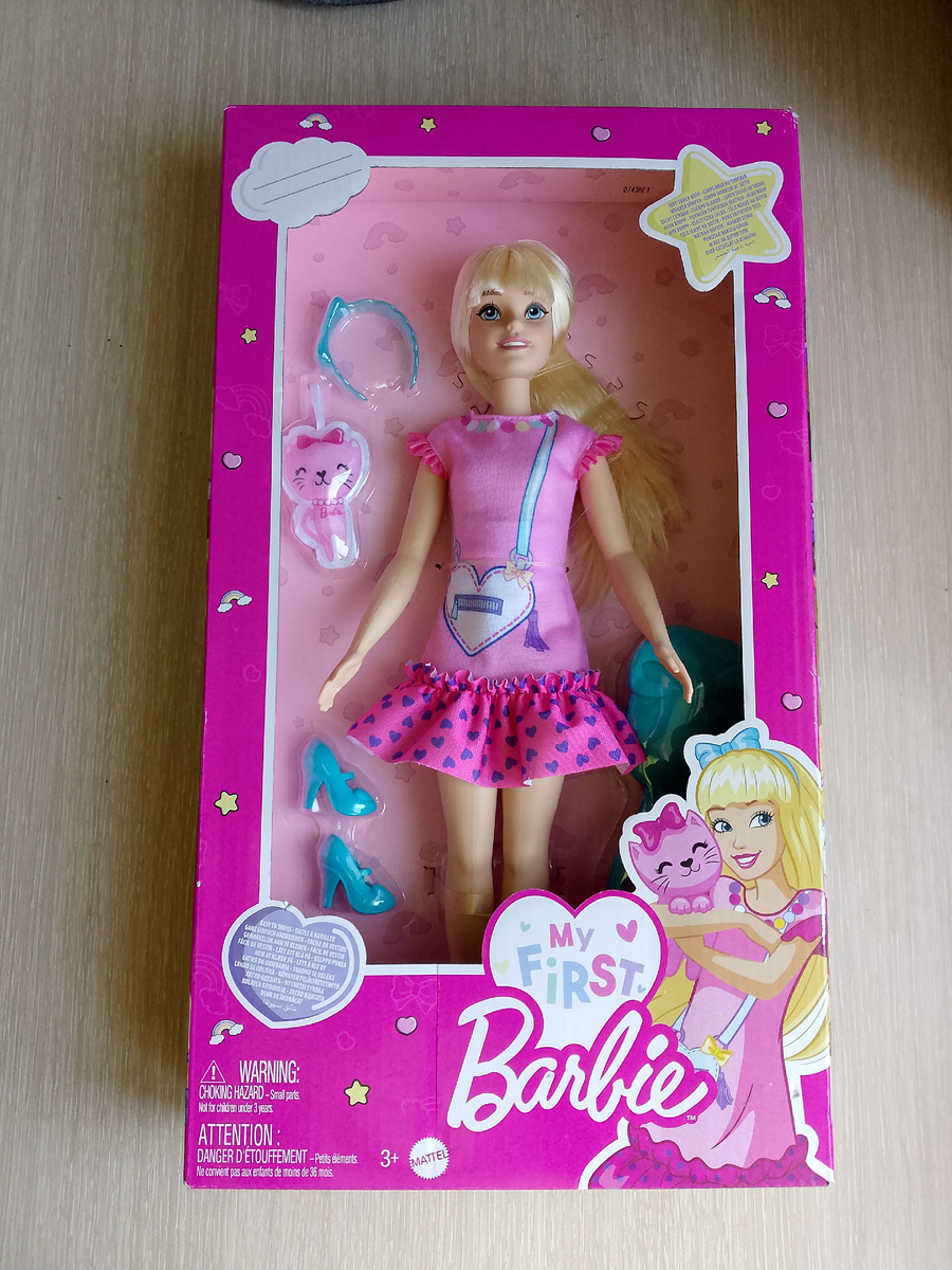 Здравствуйте, друзья-кукольники)))) Давно обещала сделать обзор нестандартной биг-сайз Барби и сегодня наконец-то это сделаю😉 Вот в таком виде кукла продаётся. Передней стенки у коробки нет. Поэтому у меня была возможность общаться с ней ещё до того, как муж подарил мне её. Симпатичная задняя стенка. Аксессуаров немного. По-началу меня раздражала сумочка в виде котёнка. Решила отдам Паолкам, но потом оказалось, что Лерчик её очень любит. Сравню её с Барби Color revial со стандартным ростом и формами. Рост-30см Окружность головы- 11см Обхват груди- 12,5см Обхват талии- 10см Обхват бёдер-13см Ширина плеч-6см Длина руки-10,5см Длина ноги- 17см Длина стопы-2см Рост-34см Окружность головы-14см Обхват груди- 14,5 см Обхват талии-12см Обхват бёдер-15см Ширина плеч-7,5см Длина руки-12,5см Длина стопы- 2,9 см. Длина ноги-19см А среднем разница в размерах- 2 см Материал куклы прорезиненный, приятный на ощупь. Голова поворачивается вправо-влево. Наклоняться не может. Разнотон с телом заметен