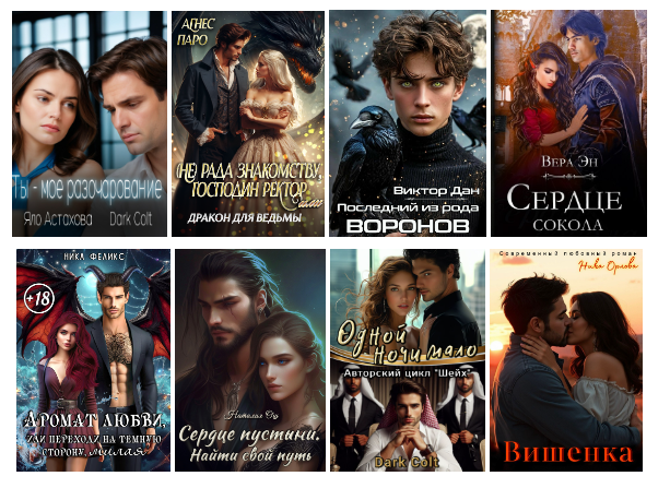 “Вишенка” Ника Орлова Алан подходит, обнимает меня сзади, прислоняется щекой к моей щеке. - Я не хочу тебя терять, но и обнадеживать не хочу. Я не принц на белом коне. От женщин мне нужен только качественный секс. Разница только в том, что раньше я не зацикливался с кем переспать, у меня нет с этим проблем. Сейчас мне нужен секс с тобой, именно с тобой! Я не могу это объяснить даже себе. И еще, мне нужно, чтобы ты была только со мной, это черта, за которую нельзя заходить. Если тебя устраивает такой расклад, добро пожаловать, если нет – давай на этом закончим, прямо сейчас. Горячая новинка "Ты - мое разочарование" от авторов Яло Астаховой и Dark Colt Аннотация: Я вышла замуж по любви и всегда считала, что это чувство взаимно. Никогда я даже предположить не могла, что любимый мне изменит! Но его поведение стало последней каплей – гирькой на весах моего разочарования, склонившего меня к разводу. Читать тут Горячая новинка “(Не) рада знакомству, господин ректор или дракон для ведьмы” о