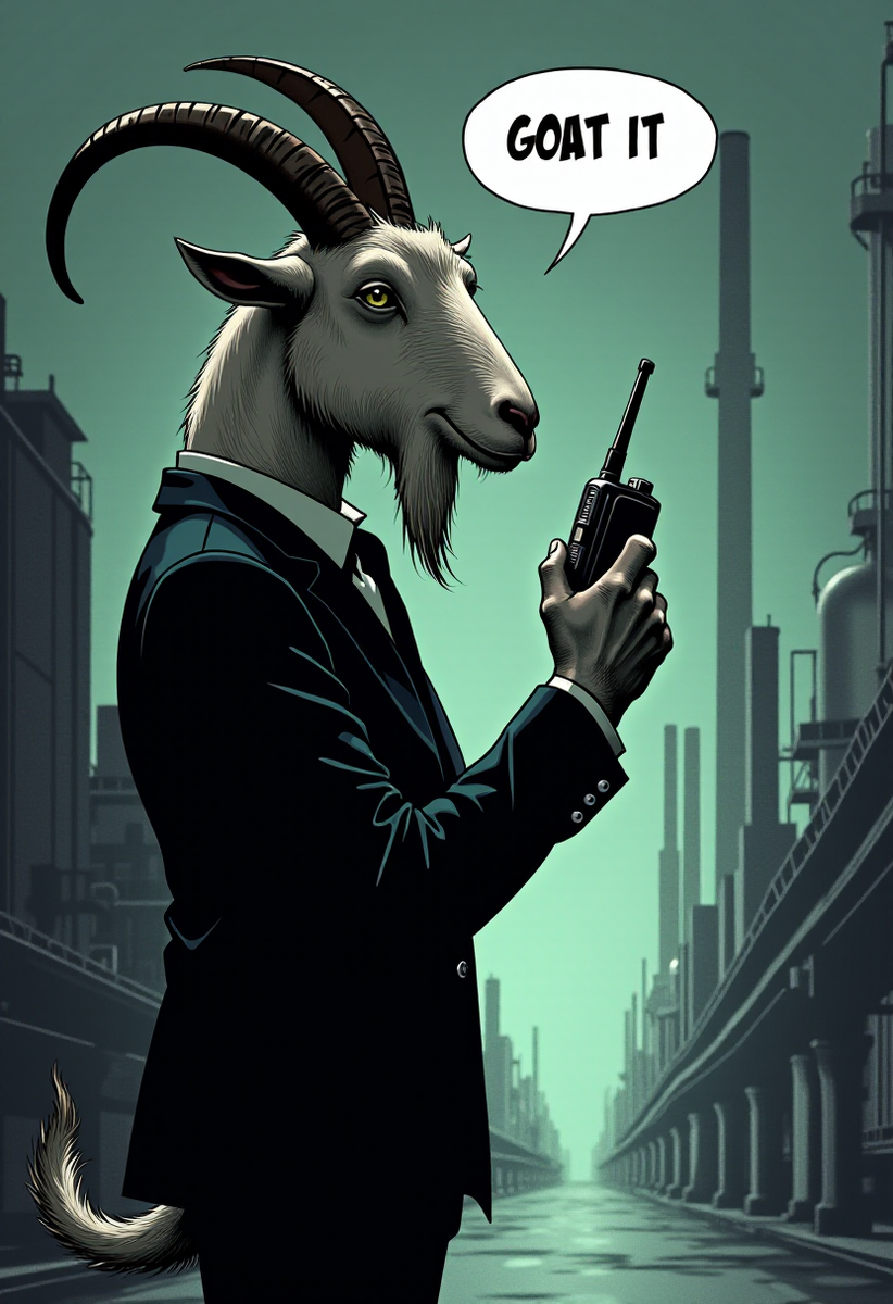 ну и собственно родился сюжет - козел - секретный агент говорит по рации "Принял". Тут взята за основу полярная лисица, и переосмыслена в стиле Двуликого из DC. Благо FLUX умеет и писать неплохо, и с композицией научился работать. Левая половина нормальная, а правая - злобная и в стильном обугленном пиджаке. На картинке обыгрываются названия дней недели на английском "Sunday" и "Monday". Воскресенье - буквально "солнечный день". В противоположность ему "Moonday" - понедельник, но добавлена одна буква, что превращает его в "лунный день" На этом пока все! Пишите в комментариях, если есть еще идеи игры слов ;)