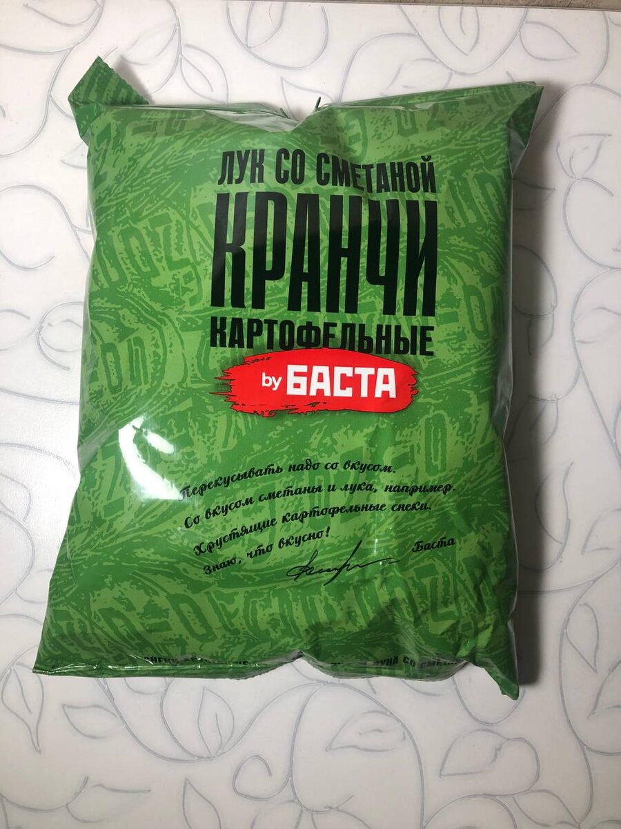 Сегодня у нас на обзоре новинка от «Басты» — чипсы со вкусом лука со сметаной. Я купил их в магазине за 60 рублей. Эти чипсы производит тот же производитель, что и «Русскую картошку», поэтому они выполнены в похожем стиле. Упаковка полностью заполнена чипсами, что за такую цену просто отлично. Однако есть и минусы. На поверхности чипсов я заметил мало специй, и это сильно повлияло на вкус. По вкусу они похожи на «Русскую картошку», но качество ниже — не хватает вкуса и специй. Это что-то вроде обычной картошки, но с небольшими добавками. Я пробовал сухарики от «Басты» и остался доволен, но с этими чипсами у меня смешанные чувства. Оцениваю их на 3 из 5. Состав: пеллет пшенично-картофельный (мука пшеничная, мука кукурузная, крахмал картофельный, хлопья картофельные, соль, куркума молотая, масло подсолнечное рафинированное дезодорированное), масло растительное, комплексная пищевая добавка «Лук со сметаной» (сухая молочная сыворотка, соль, лук порошок, сахар, усилители вкуса и аромата (E6
