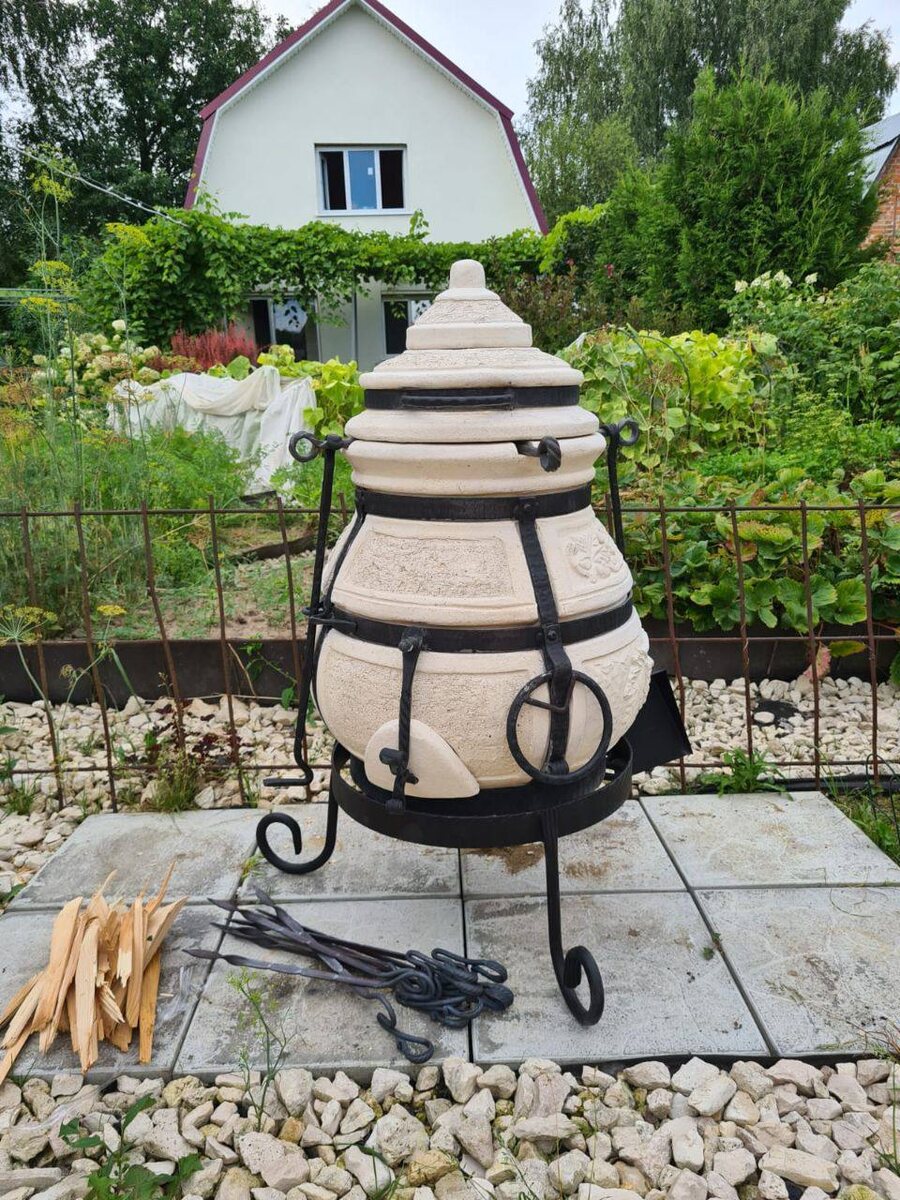 Все тандыры изготавливаются вручную, и каждое изделие уникально. Тщательный расчет пропорций и толщины стенок делает их надежными, а кованые элементы дизайна придают изделию особый шарм.