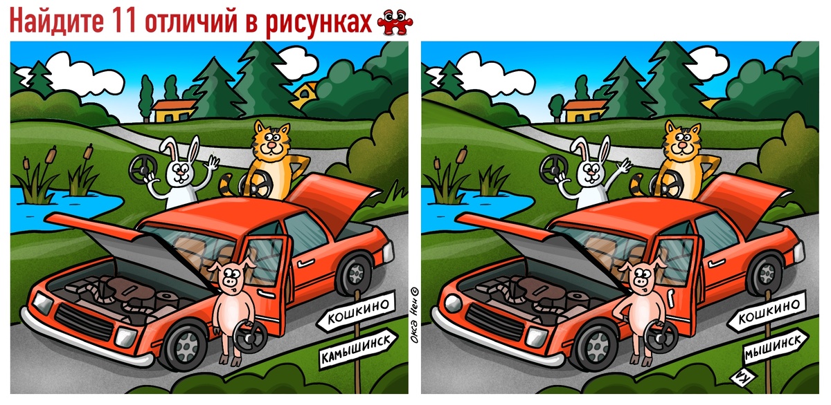 Найдите 11 отличий на картинках. Тест памяти и внимания, позитив для хорошего настроения