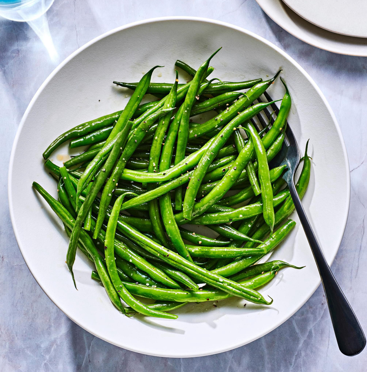 Вам потребуется (на 4 порции): Поместите зеленую фасоль в сковороду; влейте ¼ стакана воды. Доведите до кипения на сильном огне. Как только вода закипит, накройте кастрюлю крышкой и варите 3 минуты. Откройте сковороду и добавьте сливочное или раст. масло. Готовьте 1 минуту или пока вода не испарится. Посыпьте солью и перцем.