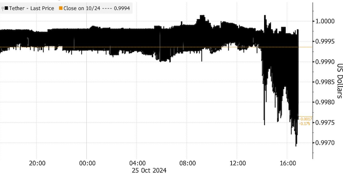 Курс USDT упал ниже $1. Источник: Bloomberg