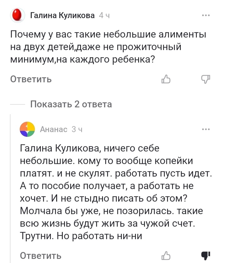 1. Почему у вас такие небольшие алименты на двоих детей?