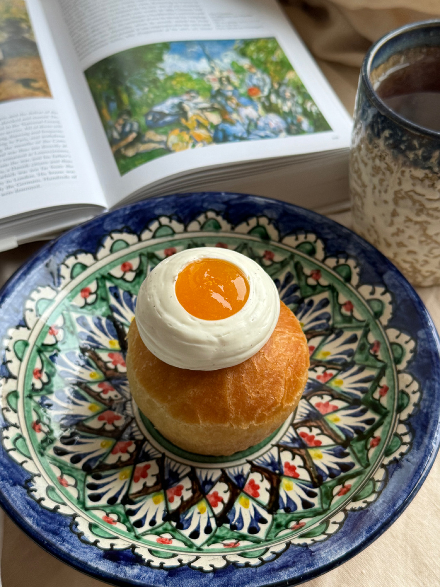 Ингредиенты (на 16 штук): Тесто ⠀ 1. Я делал в планетарном миксере, но можно руками, либо насадкой спираль на миксере. Закиньте в миксер дрожжи, муку, сахар, яйца, взбивайте пару минут, закиньте соль. Месите на средней скорости, пока тесто не начнет отлипать от стенок, и пока не взобьется «каркас» теста. ⠀ 2. Закидывайте масло порциями, месите до мягкого гладкого теста, где хорошо развилась клейковина (сделайте тест на «глютеновое окно», мне самому надо было больше домесить. Положите в миску, закройте ее пленкой, оставьте в комнатной температуре на 2 часа. Формы смажьте растительным маслом. Скатайте шарики по 40-45 гр (у меня по 35, но маленькие оказались) закиньте в формы, оставьте на 1 час. Пеките 25 минут при 170 С в режиме конвекция. Вытащите из форм и оставьте на 1 час и более в комнатной температуре. ⠀ Ванильный ганаш ⠀ 1. Желатин залейте 15 гр ледяной воды, 172 гр сливок и глюкозу доведите до кипения, закиньте набухший желатин, перемешайте, полейте на шоколад, пробейте блендер