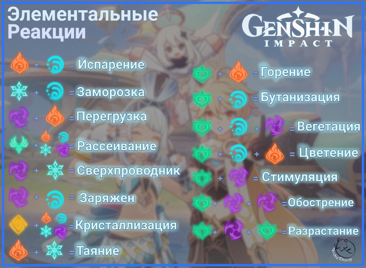 Каждая реакция добавляет уникальные возможности для стратегий боя, они помогут вам освоить тактику боя и улучшат вашу команду для победы над сильнейшими врагами Тейвата. Экспериментируйте с различными героями и находите свои любимые стихийные пары!