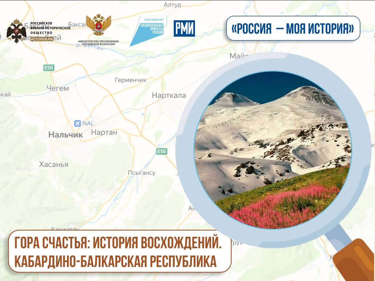 Кабардино-Балкарская Республика Кабардино-Балкарская Республика славится своими живописными пейзажами, самобытной культурой и уникальными обычаями местных народов и Эльбрусом. Двуглавый Эльбрус имеет высоту 5642 м – западная вершина – и 5621 м – восточная, которая является самой высокой точкой на Северном Кавказе в России и Европе. Кабардинцы называют вершину Ошхомахо – «гора счастья», а балкарцы – Минги-Тау, что означает «ледяная гора». В 1829 году было запланировано первое научно-исследовательское восхождение на Эльбрус. Его организовала Императорская Российская Академия по инициативе начальника Кавказской укреплённой линии Георгия Эмануэля. Килар Хаширов повёл экспедицию с северной стороны Эльбруса и 22 июля 1829 г. сумел подняться на Восточную вершину. Оттуда он принёс кусок базальта. Подробнее читайте в статье «Гора счастья: история восхождений. Кабардино-Балкарская Республика». Эксклюзивно на Главном историческом портале История.РФ!