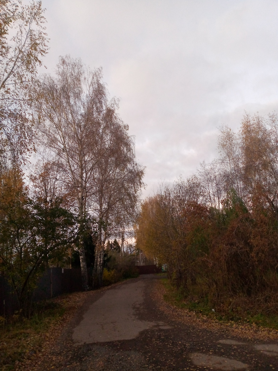 Всех приветствую 🖐️ 🤗 26 октября , суббота. У кого то выходные, а у нас обычные дни, так похожие один на другой. Ничего особо не меняется, а так же ничего и не происходит. Сплошной день сурка. Хоть дождя нет и это немного радует. Вчера наконец то вылезла из своей ямы, кофе мой закончился, пошла прогулялась и других людей хоть увидела. А то всё только по лесам да полям лазию тут в компании своего пса. Так и одичать можно. Вчера вот даже не знала, как одеться правильно и что сейчас носят. Думала вот, можно ли уже в теплом шарфе ходить или нет. Что надеть куртку или жилетку тёплую? Кеды, кроссовки или все же зимние сапоги...Как одеться, что бы люди восприняли нормально твой внешний вид? Ведь находясь постоянно на участке, среди деревьев и никуда не выходя особо и стиль одежды совсем другой. Нацепил то, что тебе удобно, благо не видит никто и дело с концом. В общем оделась (сын сказал, что нормально, так сейчас ходят) и пошла по поселку прогулялась и в магазин наш зашла.