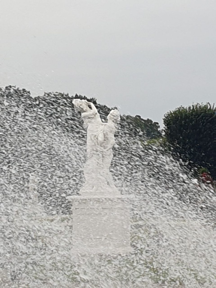 Кроме того, ходит такая легенда, что какой-то идиот решил сунуть в эту струю руку... кровавая история, руку, естественно, оторвало. Не знаю, может и брешут, для острастки) Сам сад строго симметричен.