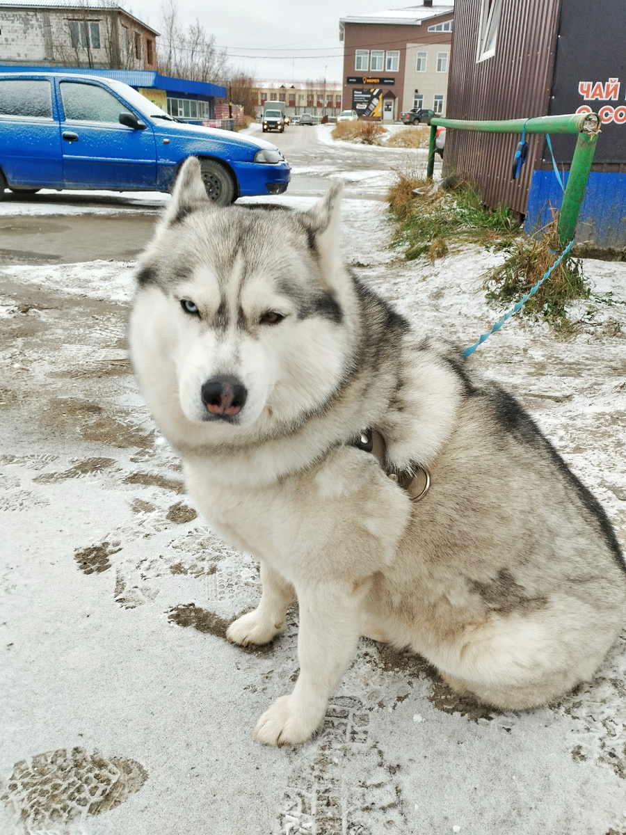Я раньше думал, что собаки с разными по цвету глазами это фотошоп, но сегодня встретил вот такого красавца. И у него реально один глаз карий, второй голубой.