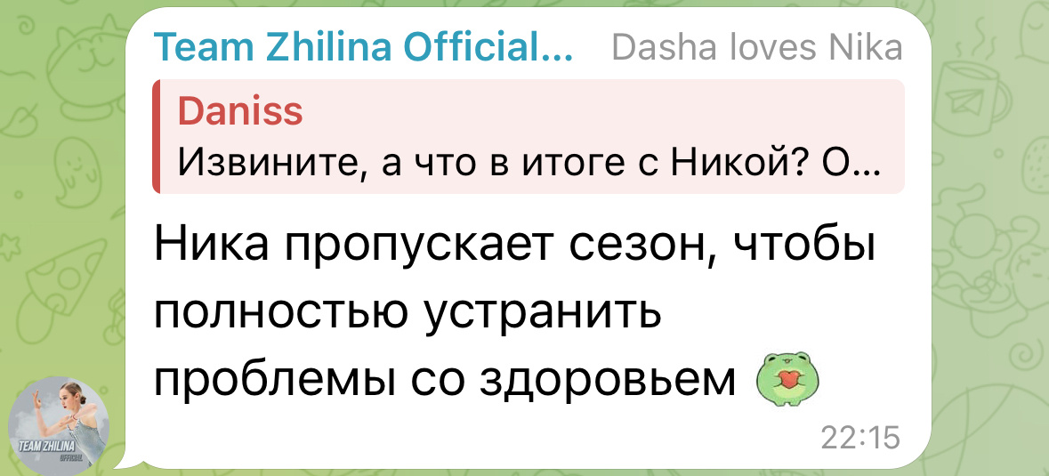 Что-то совсем не складывается у Вероники Жилиной со спортом. Фигуристка с огромным потенциалом, который не удается реализовать и, маловероятно, что ситуация сильно улучшится в будущем. Много травм, неприятностей по здоровью. Вряд ли по мере взросления все травмы уйдут и не будут беспокоить. К сожалению, фан-группа Ники сообщила, что спортсменка решила полностью пропустить сезон 2024-2025 и сделать фокус на здоровье. Благо, восстановление не мешает участию в ледовых шоу Евгения Плющенко. Сейчас, например, Ника участвует в шоу «Русалочка» в Санкт-Петербурге. Грустно, очень грустно ❤️🩹 Веронике желаю крепкого здоровья!