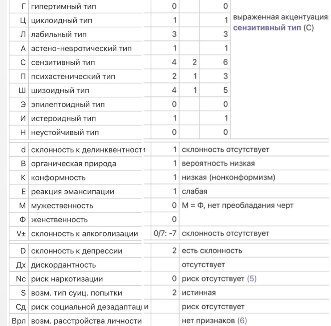Ну, вот. Мы изучили с вами акцентуации характера по Андрею Евгеньевичу Личко (советский психиатр, заслуженный деятель Российской Федерации, профессор, доктор медицинских наук). Теперь можно определить свои. Я поделюсь с вами сервисом, где вы сможете найти профессиональный тест, который используют в своей работе психологи разных направлений. Прохождение теста поможет с определением ваших акцентуаций. Как правило, ярко выраженными могут бать не один тип, а пару или сразу несколько. Тот тип, который выделяется больше остальных, является определяющим, но менее значимые исключать не стоит. Важно помнить, что акцентуации являются нормой, и не считаются психопатиями. Но знать их стоит хотя бы для того, чтобы понимать, как они могут прогрессировать при попадании личности в неблагодарные условия. Также это удобный инструмент в коммунальных с близкими, в выборе интересующих направлений. Как правило, в разные периоды жизни результаты могут меняться, в зависимости от преобладающих на тот мом