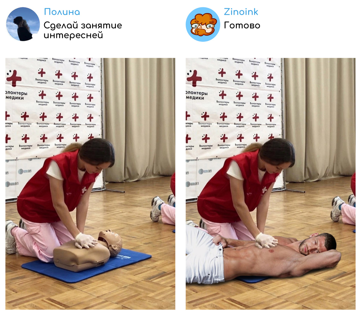 Недавно листал социальные сети и понял, как с годами изменились наши представления о фотографиях. Сейчас все снимки сплошняком завалены котятами и щенками. А раньше если кот попадал в кадр, он получал не лайки, а тапком!) О прелестях современной фотографии и поговорим в моей рубрике «Фотошопы». Напоминаю, что и ты можешь стать ее героем. Просто присылай фотку с пожеланием, что бы хотел на ней исправить. А я все сделаю! С радостью и неизменным юмором! А пока давай полюбуемся на героев этого выпуска. Уметь оказывать первую медицинскую помощь – прекрасное умение! Но кажется, после моего фотошопа героине фото самой понадобится сердечная реанимация. Сердце замирает от восторга! В молодости парни любят большие – машины, женские формы и компании друзей. В зрелом возрасте большие – скидки, выходные и порции на ужин. В тему – следующий фотошоп. Чем бы дитя не тешилось, лишь бы...не работало! А ведь на каждом рабочем месте есть техника безопасности. И не везде ДМС и страховые случаи). Позаботилс