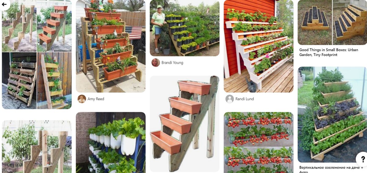 ( 55 ) Наконец то дождались ! Лайфак для дачи ( № 1 ) ( 56 ) Наконец то дождались ! Лайфак для дачи ( № 2 ) ( 69 ) Наконец то дождались ! Лайфак для дачи ( № 3 ) В этой статье речь пойдет об этажерки для балконных ящиков . У меня этажерка получилась довольно хлипинькая , так как была сделана очень быстро и практически из того , что было , хоть и прослужила долгих восемь лет , для дополнительной надежности приходилось вбивать толстую арматуру ( фото будут ниже ) и фиксировать проволокой . Хотя сама идея такой конструкции довольна оригинальна , для которой , уверен , найдется место если не в каждом саду , то на многих участках будет смотреться довольно оригинально . В интернете , уверен , всем попадались ( 3 фото ниже ) похожие конструкции , но практически нигде нет варианта где в верху был не балконный ящик а " полочка " для вазонов с цветами , поэтому если кто - то будет делать , что - то похожее , то обязательно - вверху "полочка" для вазонов с цветами . Ниже привиду нес