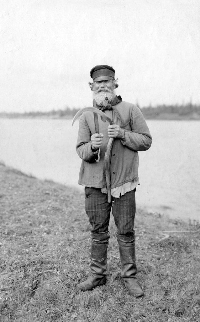 Родом он был с русского Севера. Фото сделано около 1910 года. Шутит наверное над фотографом. Беззлобно. Немного смущен своей ролью.