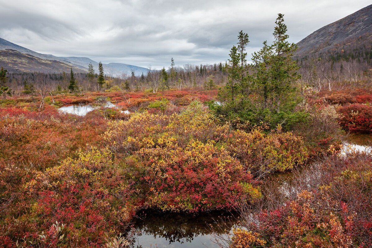 В лесотундре болота отличаются обилием торфа, трав, ягод и мхов. Флора здесь очень разнообразна. Это также переход от тундры к тайге.