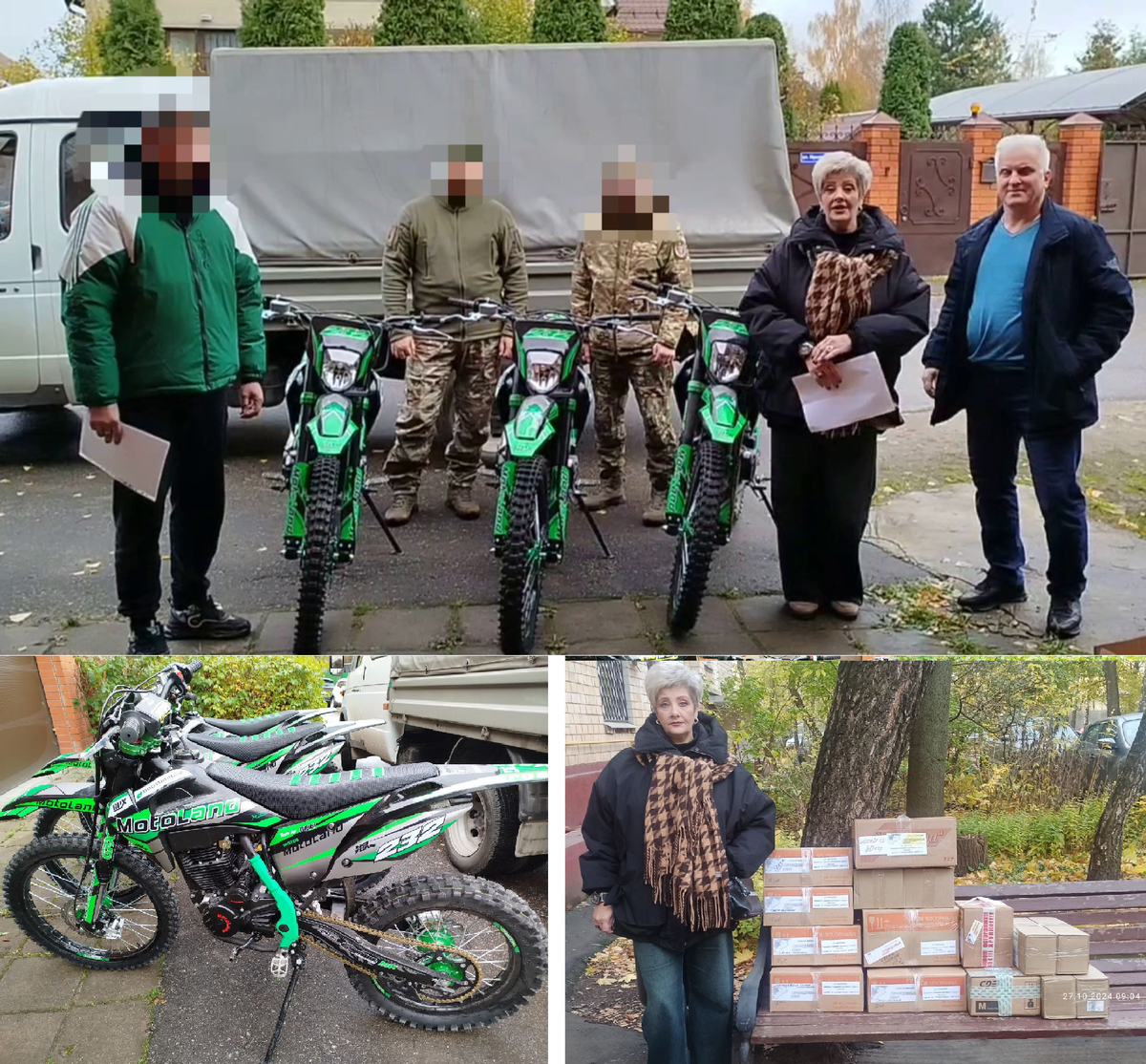 Дорогие друзья! Сегодня 27.10.2024 г. наша волонтерская группа "Справедливый север", благодаря вашей неоценимой помощи, отправила партию гуманитарной помощи мотострелкам на Запорожское направление. Кроме наших традиционных блиндажных свечей, влажных салфеток, носков и разнообразных вкусностей, изготовляемых и приобретаемых благодаря всем вам , друзья, в этот раз, благодаря личному пожертвованию средств Юрия из района Сокол, мы смогли закупить и передать бойцам три кроссовых мотоцикла, которые очень необходимы им для выполнения боевых задач. Необходимые документы по передаче подразделению мототехники оформили. Выражаем огромную благодарность Юрию за неоценимую помощь бойцам и оказанное доверие нашим волонтерам! Помимо трех кроссовых мотоциклов было передано: 21 апреля Гуманитарный центр "Звезда" проводил в Москве мероприятие, куда были приглашены представители разных волонтерских объединений для знакомства с целью улучшения взаимодействия по оказанию помощи нашим бойцам, занятым в СВО