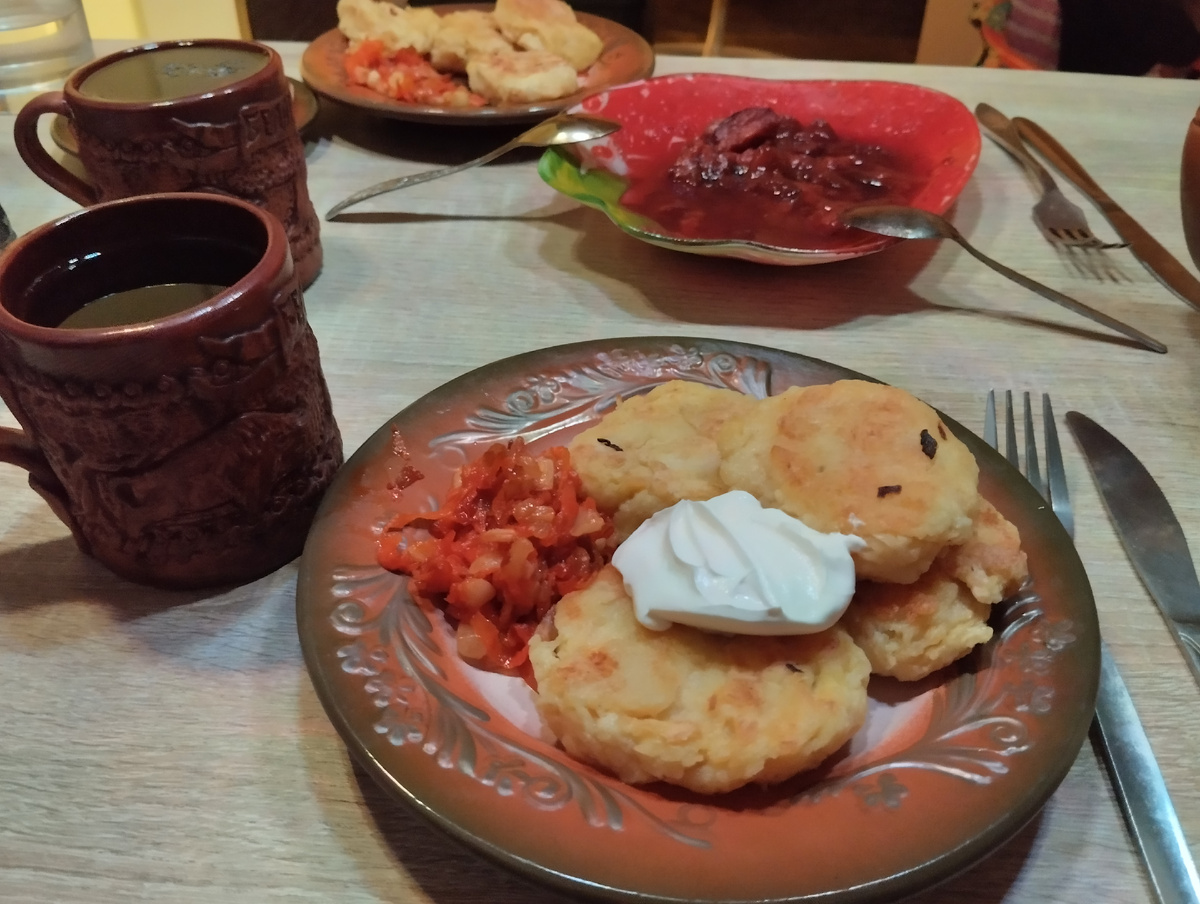 Привет, друзья! Как говорит @denseman "дом без печки сирота". И это всё потому что с печкой тепло, уютно и, конечно же, сытно, кто бы кто не говорил. Не так давно я с стала запекать в печном зольнике овощи => Это оказалось очень удобно, спасибо что читатели подсказали. Просто когда печка прогорела, я открываю зольник и складываю туда все, что хочу запечь - любые овощи, предварительно заворачиваю их в фольгу. Пока печь потихоньку остывает, овощи готовятся и никогда не пригорают, не усыхают и конечно же, не становятся водянистыми, как бывает при варке в воде. На основе этих овощей можно приготовить все, что угодно. Я запекла 3 картошины на днях, хватило на пару раз. Один раз готовила картофельнички. А на другой раз использовала картошку на гарнир у мясу. На картофельнички использовала 2 картошки, 1 яйцо и 1 луковицу. Овощи натëрла на крупной тёрке, добавила яйцо, соль, обваляла в муке и выпекать на сковороде до золотистой корочки. Ну а картошку на гарнир к мясу прост