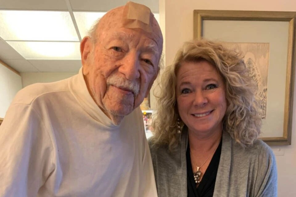 "Он был согнут, дрожал, говорил, что у него невропатия, но его ум оставался ясным", — вспоминает Джейми. "Мы рассказали ему, что он помог нам появиться на свет и показали фотографии наших родителей в молодости".