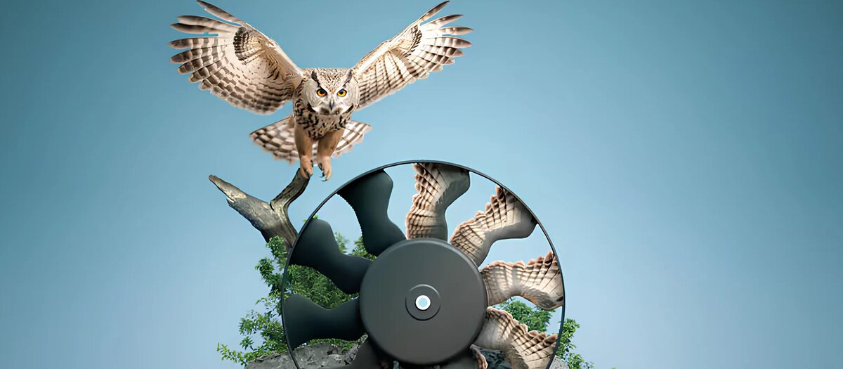 При создании вентиляторов инженеры использовали искусственный интеллект, который проанализировал особенности различных животных, известных своей бесшумностью. Выбор пал на сов, чьи перья с уникальной структурой позволяют им бесшумно охотиться и эта особенность была перенесена на лопасти вентиляторов.