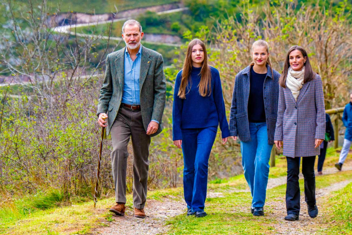 Вся королевская семья Испании прогулялась по деревне Сотрес в Кабралесе, которая стала победителем конкурса «Образцовый город Астурии». Премия вручается городу или деревне в Астурии, которые «выделились своими достижениями в защите и сохранении природной среды, исторического и культурного наследия». Награды носят имя принцессы Леонор, принцессы Астурийской. Филипп, Летиция, Леонор и София поговорили с местными жителями, осмотрели культовые места, заглянули в местные магазинчики. Летиция выбрала наряд в стиле смарт-кэжуал: кремовый джемпер с высоким воротом и сшитый на заказ блейзер в серо-белую клетку. Она дополнила свой наряд чёрными брюками. Сёстры - в джинсах, старшая — в чёрной футболке и такой же куртке, как у матери, но более тёмного цвета. А София - в синем свитере. Королевская семья в сопровождении мэра Кабралеса Хосе Санчеса отправилась на козьи альпийские пастбища, а затем в сушильную пещеру, где созревали сыры.
