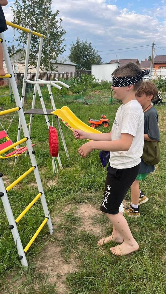 После сытной и вкусной трапезы дети и мы начали рассказывать сказки-страшилки. Это было замечательное завершение насыщенного дня, проведённого в гостях в деревне. У наших друзей семьи есть загородный домик по типу дачи, находящийся в деревне в 30 минутах езды от города. На участке они выращивают различные овощи, посадили плодовый сад, перестраивают дом и планируют строить баню. Недавно они построили новую веранду и пригласили нас в гости на отдых и шашлык. Мы, конечно, с радостью согласились. Закупившись продуктами и гостиницами, мы не могли не подумать о досуге наших детей. Семья друзей – многодетная. Мы понимали, что когда приедут и наши дети, то будет целая детская банда, которую нужно будет чем-то развлечь. Досуг я взяла на себя. Да, в деревне дети смогли бы и сами найти себе развлечения. Старшие, например, ходили гулять на детскую площадку соседней улицы. Младшие играли на территории дачи на детском спортивном комплексе. А ещё все вместе купались на озере, и было очень здорово и в