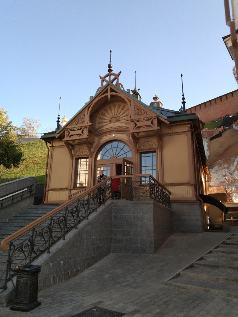 1. Нижняя станция воссозданного "Кремлевского элеватора": старейшего фуникулера России.