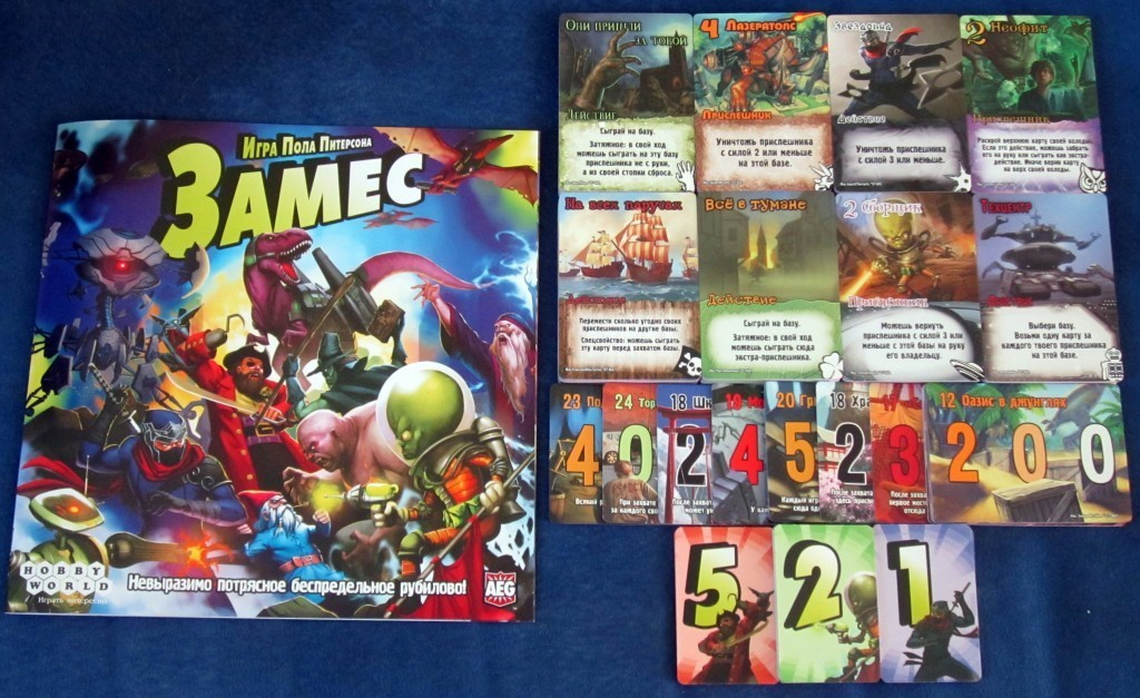 Карточный ареа контроль с элементом декбилдинга (новые карты не закупаются по ходу игры, однако на старте выбираются и перемешиваются две колоды). Мешанина сеттингов - от динозавров с лазерными пушками до ниндзя - намекает, что воспринимать слишком серьезно Замес не стоит; это легковесный филлер. Впрочем, кое-какие комбинации в игре есть, явно удачные и неудачные сочетания - фракций тоже, так что немного планирования и глубины есть. Кроме того, при захвате баз (которые дают победные очки), с одной стороны, надо стараться доминировать над соперниками, уничтожая их миньонов или вредя иными путями, а с другой - в одиночку базу захватить трудно, так что соперничество даже полезно. В целом довольно годный филлер, единственное что в базовой коробке есть дисбаланс (роботы имба) Фото с tesera.ru #настолки #настольные игры #настольныеигры