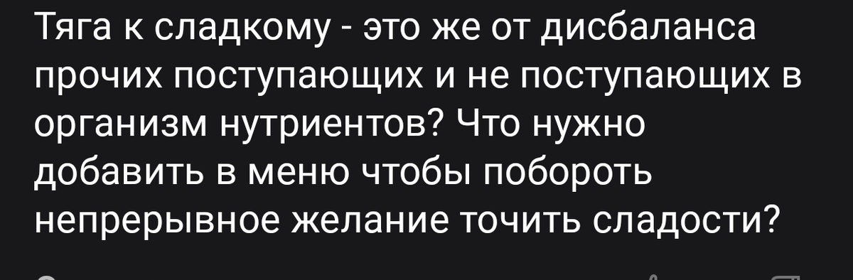 Друзья, приветствую! Очень часто мои подписчики просят меня рассказать о том, как побороть тягу к сладкому, и вообще, в каких дисбалансах кроются причины такого пищевого предпочтения. Инсулинорезистентность. В этом состоянии инсулинозависимые ткани не получают в достаточном количестве глюкозу и испытывают голод. Более того, именно для инсулинорезистентности характерны нестабильные сахара - колебания от гипергликемии к гипогликемии, что также очень влияет на тягу к сладкому. Нехватка микроэлементов. Дефициты таких микроэлементов как хром, магний, цинк, железо, витамин В1, витамин D могут провоцировать тягу к сладкому, поскольку они участвуют в углеводном и энергетическом обмене. Нарушения микробиоты кишечника. Ни для кого не секрет, что наша микробиота может влиять на наше пищевое поведение. При резком размножении условно-патогенных организмов (например, на фоне сниженного иммунитета) растёт тяга к сладкому. Глисты, кандида тоже могут усиливать тягу к сладкой пище. Нарушение кровосн