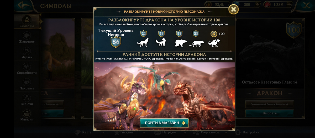 Вот если честно то я уже не могу как бы проходить эти блин главы до дракона там ур. Животных нужен, такой большой что, выполнить все эти квестовые главы блин попробую их всех пройти до июня-июля ну не знаю просто они, очень сложные и для этого надо очень, много времени боже 🙄 это не выносимо 😅 как конечно историю дракона можно задонатить за много лунных камней лучше пройти чем, задонатить лунными камнями блин ну я попробую постараться пройти все, эти главы до дракона патаму что дракон это мастер духов в которых он может превратится в любого духа волка-лесы-мндведя-пумы это де Обалденно как круто ну и не знаю буду дальше, проходить эти блин не проходимые главы