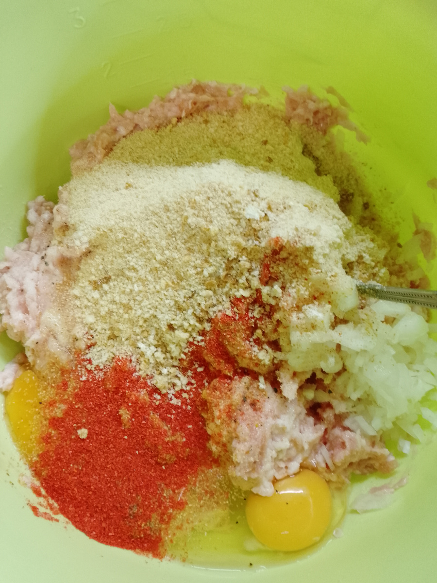 Одно из любимых блюд из детства. Очень простое и вкусное. Фарш любой ( у меня курица/свинина). Добавляйте все что Вы любите добавлять в котлетный фарш. Я добавила лук, чеснок, соль, черный молотый перец, красный острый перец, паприку, сушеный чеснок, яйца и не много панировочных сухарей. Хорошо перемешиваем. Распределяем фарш в форме прямоугольника толщиной примерно 1,5-2 см. Для начинки смешиваем вареные куриные яйца и обжаренный репчатый лук. Начинку выкладываем в середину. Поднимаем края фарша и формируем рулет. Отправляем в разогретую до 180 гр. Духовку минут на 40. Потом я выключию духовку и даю рулету остыть минут 20. Времени приготовления может понадобится чуть больше или меньше, все зависит от вашей духовки. Я запекаю в фольге, можно сформировать рулет на противне, тогда при выпекания он будет румяным. Можно сверху смазать, например кетчупом. Вкусный как в холодном так и в горячем виде. Приятного аппетита! Рекомендую так же попробовать вот такой оригинальный р