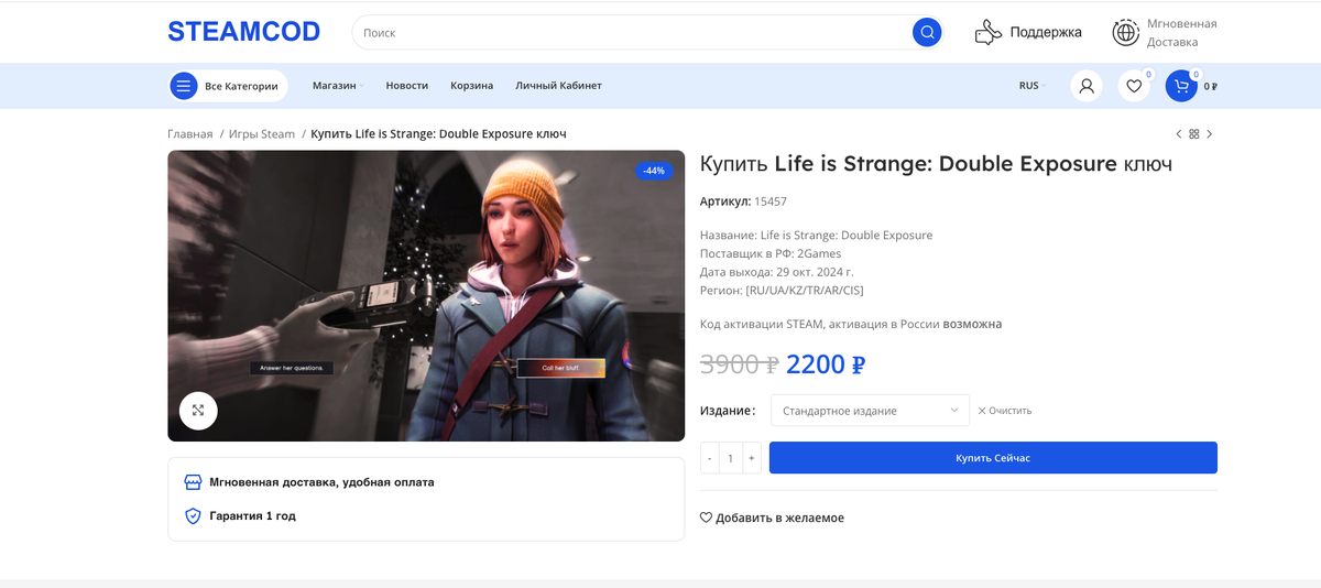 Добрый день, сегодня хочу рассказать как купить новую часть из серии Life is Strange в России в 2025 году, а именно Double Exposure. Покупка игры не особо сильно отличается от прошлой части: True Colors. Собственно вы можете купить ключ для активации в России, однако уже несколько дороже, а именно цена начинается от 2.900 рублей за издание в России.