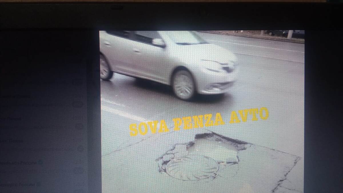 В Пензе на дороге образовалась глубокая яма рядом с канализационным люком