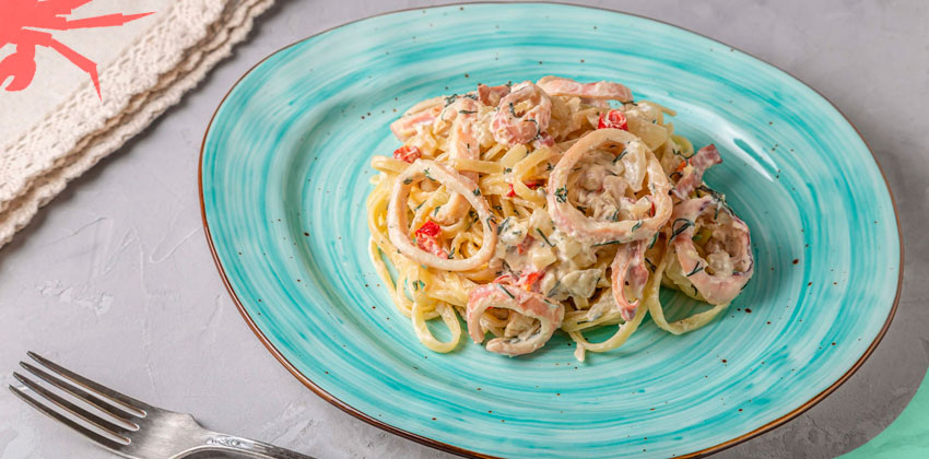 Рецепт: Паста с кальмарами в сливочно-винном соусе