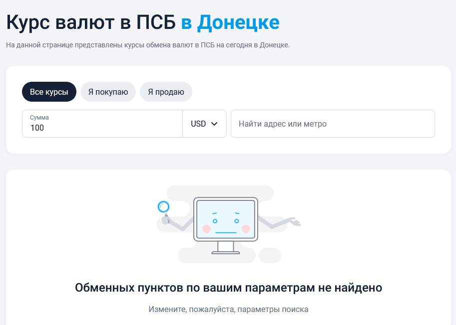 Промсвязьбанк в Донецке начал проводить операции по покупке и продаже иностранной валюты. Обменки закрылись окончательно
