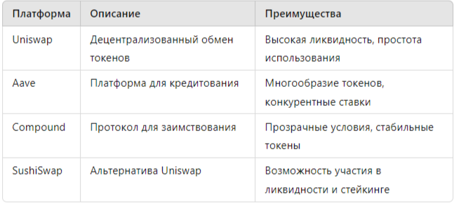 В последние годы децентрализованные финансы (DeFi) стали одним из самых обсуждаемых трендов в мире криптовалют. DeFi представляет собой экосистему финансовых приложений, построенных на блокчейне, которые позволяют пользователям получать доступ к финансовым услугам без участия традиционных банков. В этой статье мы рассмотрим, как можно эффективно инвестировать в DeFi, какие преимущества и риски это приносит, а также дадим полезные советы для начинающих инвесторов. DeFi — это система финансовых приложений, построенных на блокчейн-технологии, которая предоставляет доступ к финансовым услугам, таким как кредитование, заимствование, обмен и страхование, без посредников. Приложения DeFi функционируют на смарт-контрактах, которые автоматически выполняют условия сделки при соблюдении определённых условий. Перед тем как начать инвестировать в DeFi, важно учитывать следующие риски: Существуют различные платформы для работы с DeFi, среди которых наиболее популярными являются: Для взаимодействия