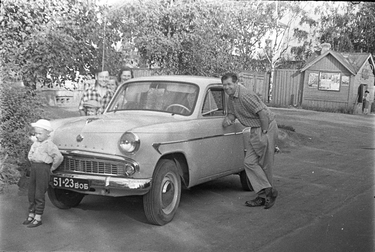 На снимке начало 1960-х и Советский проспект около церкви Кирилла Белозерского в Рощенье, кусочек которой как раз виден из-за деревьев. К 1973 году вплотную к церкви пристроят новый корпус обойной фабрики. Это место с другой точки можно увидеть в этом посте.