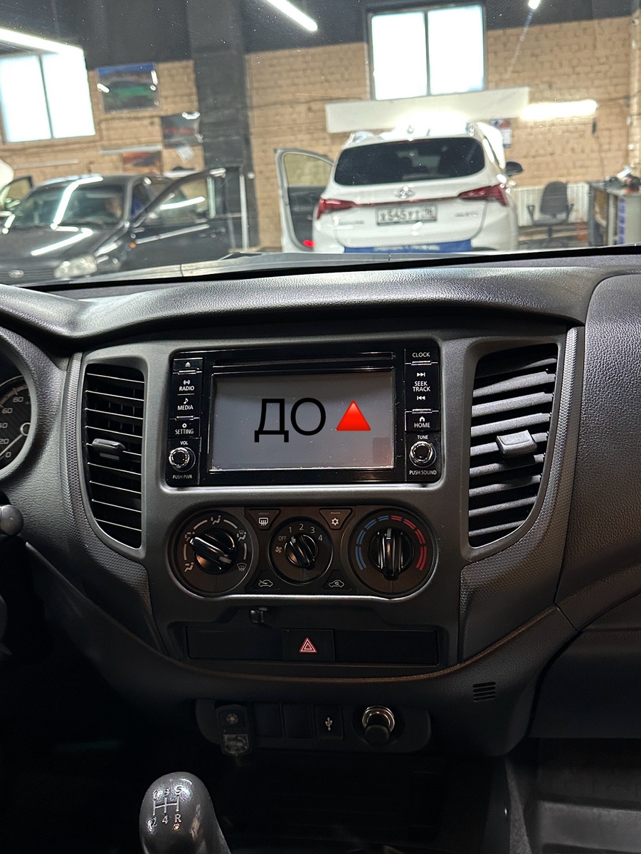 Mitsubishi L200 В штатные места на передних дверях установили компонентную акустику JBL, сверху твиттер, снизу мибдас; в задние - коаксиальные динамики JBL. Проставочные кольца были покрашены краской для того чтобы защитить их от влаги. Заменили головное устройство на Андроид мультимедиа. Все приложения с Google Play Market можно будет скачать, такие как Яндекс.Музыка, Навигатор, ВК.Видео, Ютуб, и тд. Возможность подключения интернета через собственный sim-слот либо раздача wi-fi с телефона. Была установлена камера заднего вида с ahd разрешением. Изображение с неё выводится на новый монитор. Камеру установили непосредственно на откидной борт, для удобства сцепки с прицепом, чтобы видеть фаркоп. Можно было установить камеру переднего вида, но владелец захотел дооснастить автомобиль парктрониками. Установлены под цвет кузова на передний бампер. Притемнили задние фонари тонирующей полиуретановой плёнкой.