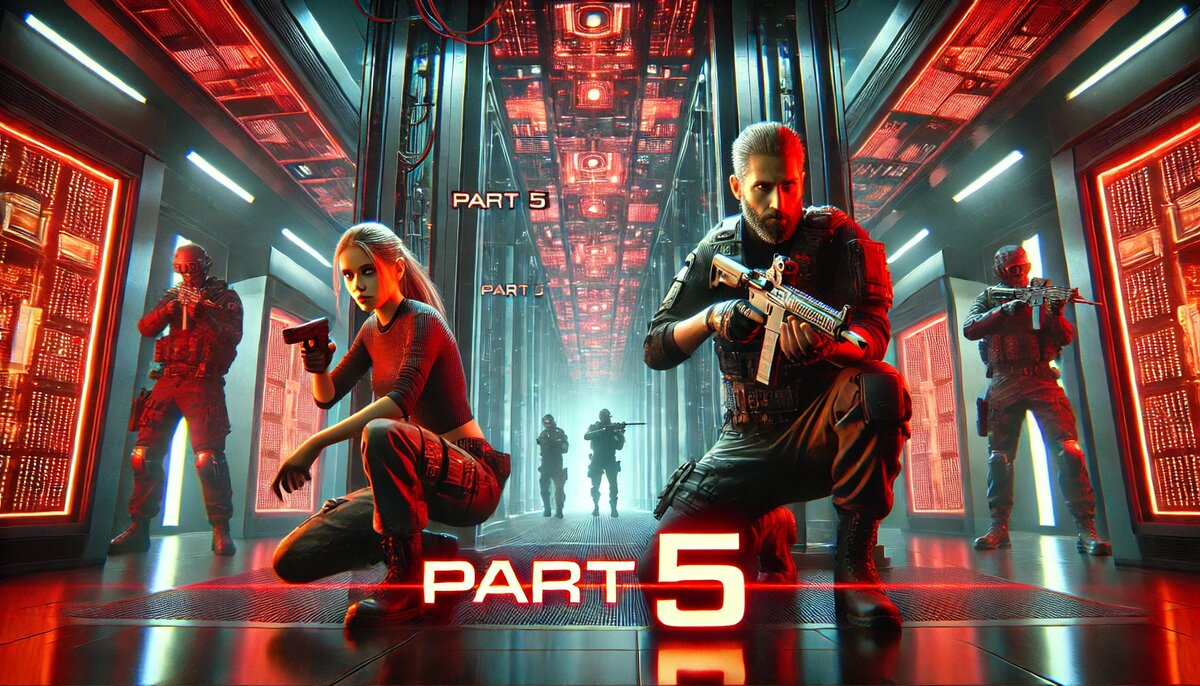 Зал мгновенно заполнился светом вспышек выстрелов и звуками взрывов. Мария и Даггер быстро отступили к укрытию, прикрывая Стерна, который продолжал копировать файлы. Охранники атаковали с разных сторон, их оружие блестело под светом серверов, а лица были бесстрастными, как у машин.