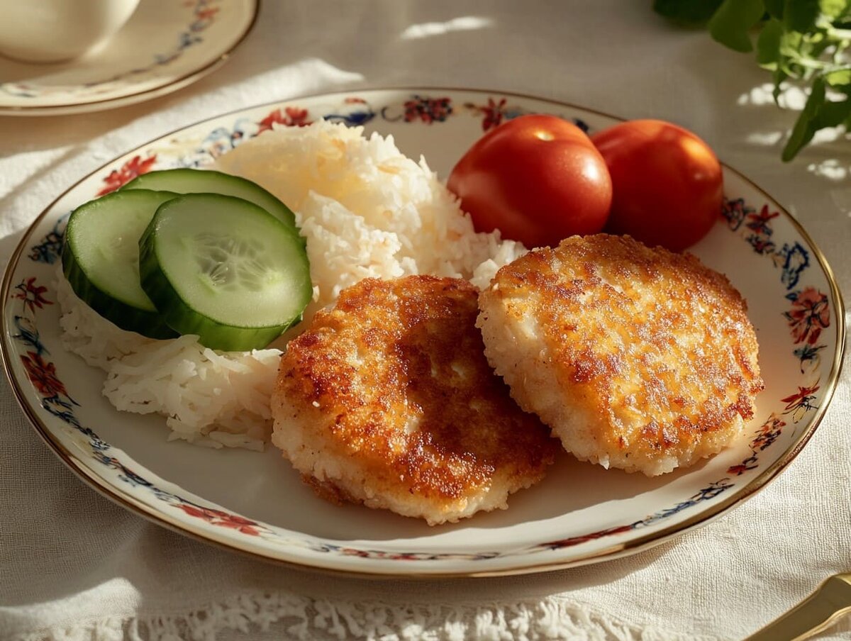 Рыбные котлеты с рисом — это питательное и лёгкое блюдо, которое можно подать как на обед, так и на ужин. Сочетание нежного рыбного фарша с отварным рисом делает котлеты мягкими и сочными. Это отличная альтернатива мясным котлетам. Котлеты из фарша рыбы – полезные для здоровья и легко усваиваются. Рыбное филе (например, треска, хек) — 500 г Рис — 100 г (лучше круглозерный) Лук репчатый — 1 шт. Яйцо — 1 шт. Панировочные сухари — 50-70 г Масло растительное — 2–3 ст. ложки (для жарки) Соль — по вкусу Чёрный молотый перец — по вкусу Зелень (петрушка, укроп) — по желанию Рыбные котлеты с рисом готовы. Приятного аппетита! Подписывайтесь на канал "Вкусно Очень" Данный рецепт на сайте👇